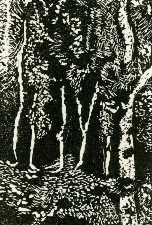 Birch Forest is my first wood engraving. A product of a class on wood engraving in Buffalo, NY. The end grain wood block is 2” x 3” . The selection of the image took quite a long time, and I picked the Birch Forest, from a photograph I took in Incheon, South Korea in a park. Converted it to a workable image for this tiny engraving. It was completed in 2025.
